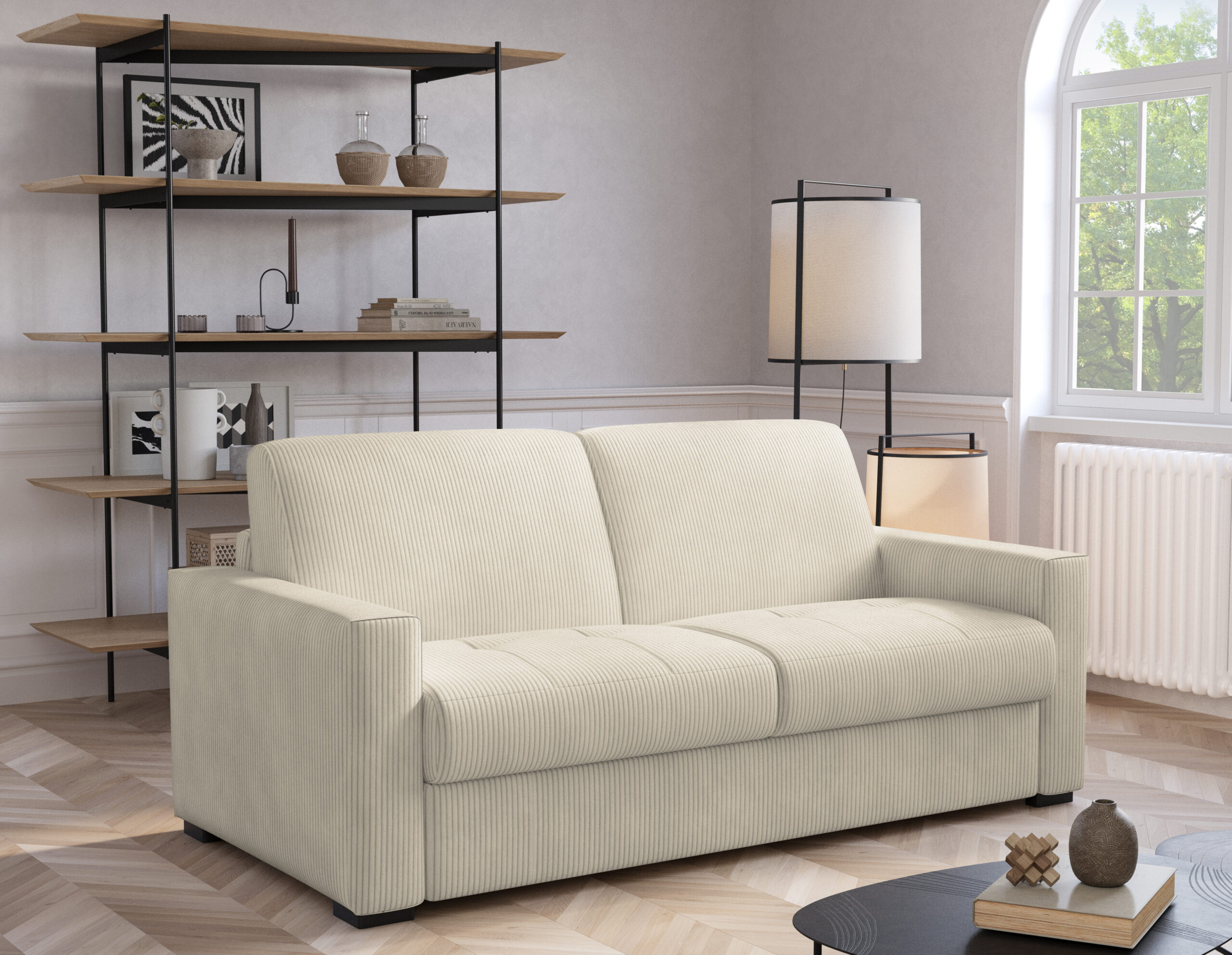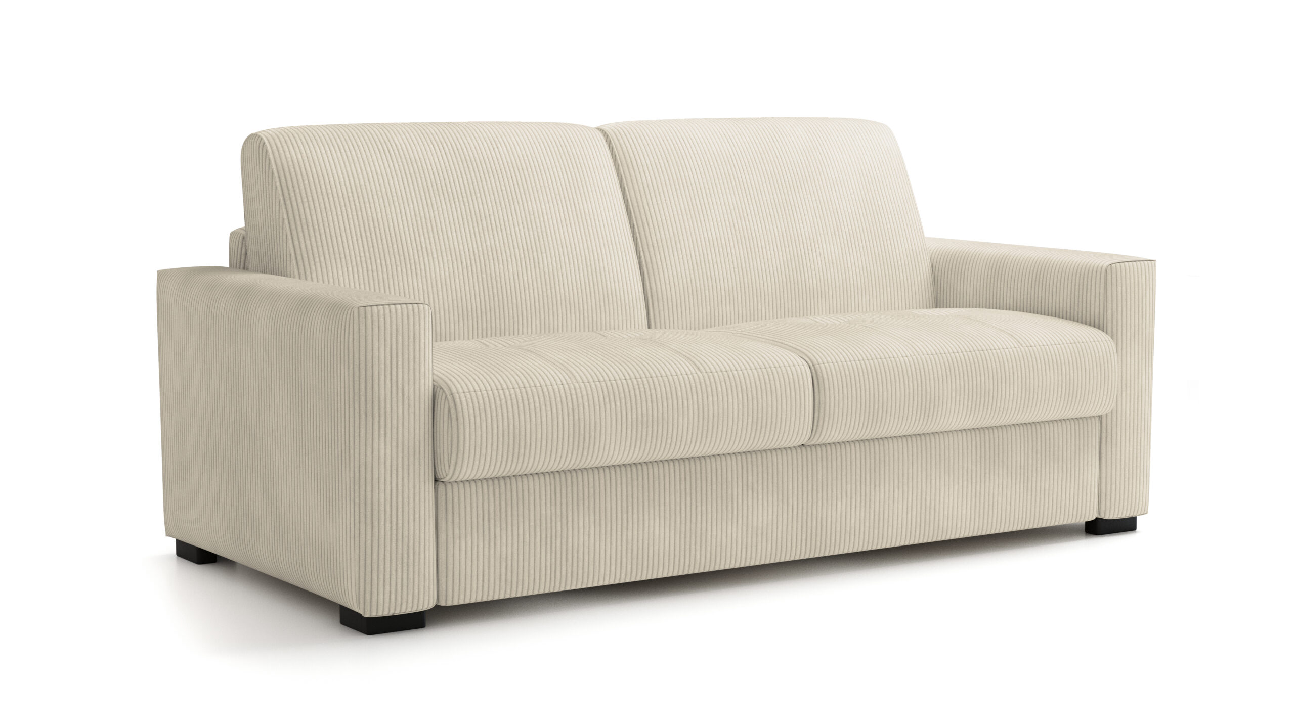 Il divano-letto in velluto a coste beige, dal design moderno e minimalista. Con linee pulite e braccioli squadrati, unisce eleganza e funzionalità. Perfetto per ambienti contemporanei, offre comfort durante il giorno e si trasforma facilmente in un letto accogliente per gli ospiti. Ideale per chi cerca stile senza rinunciare alla praticità.