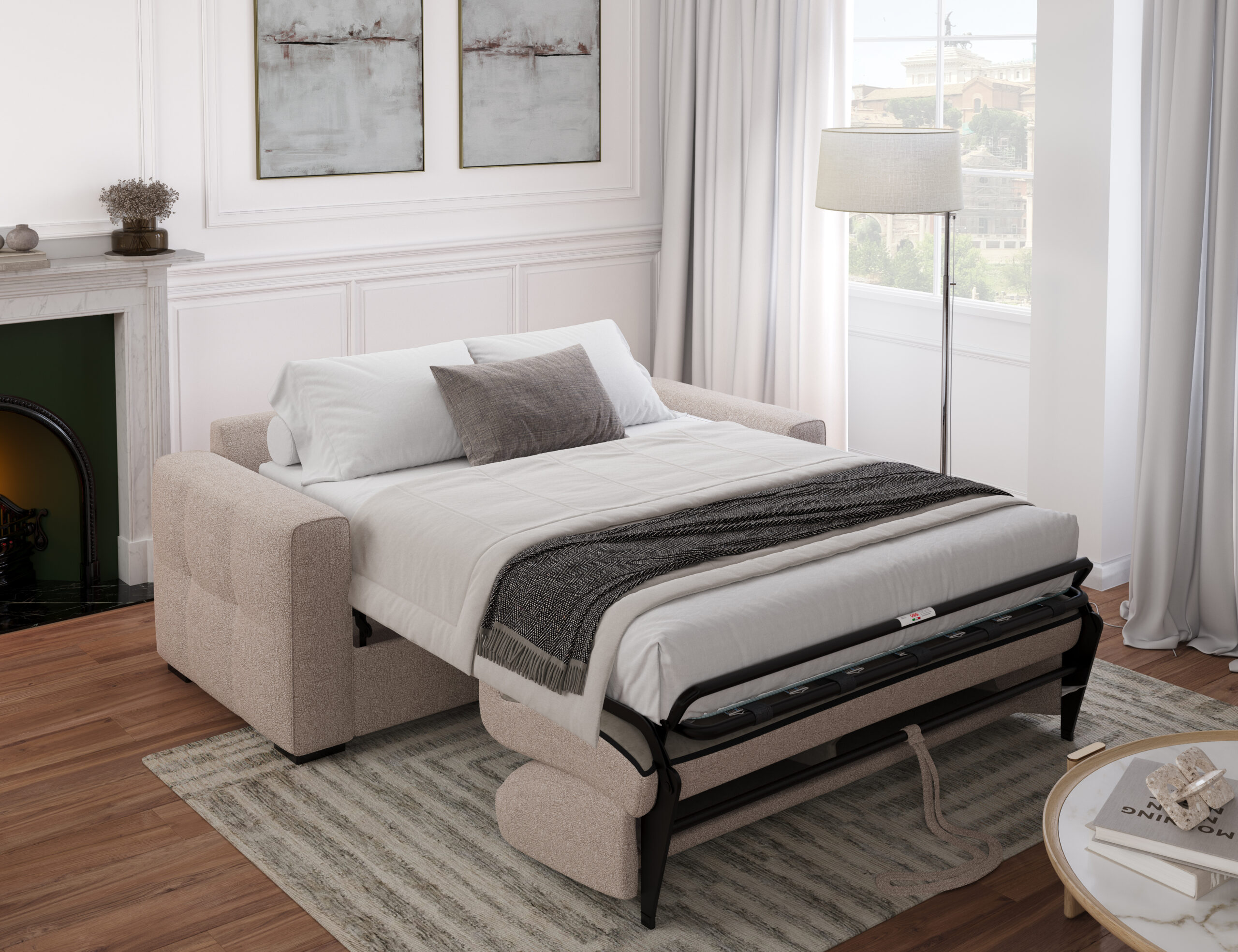 Il divano-letto Eureka unisce design moderno e funzionalità, con un materasso alto 22 cm che garantisce comfort ottimale sia da seduti che da sdraiati. Perfetto per spazi ridotti senza rinunciare al riposo di qualità.