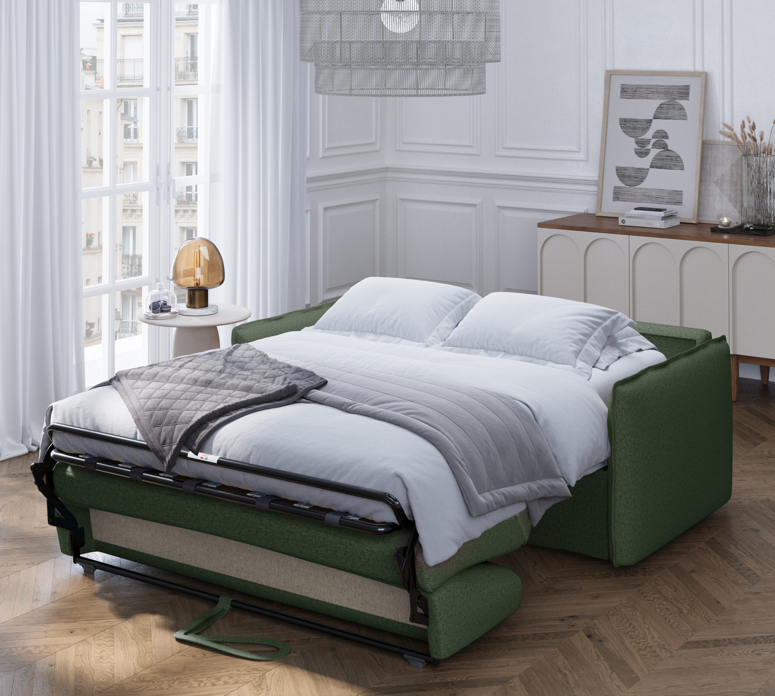 Il divano-letto Mykonos B combina design moderno e funzionalità, con una seduta ampia e confortevole e un letto facile da aprire, perfetto per ottimizzare gli spazi mantenendo stile e comodità.