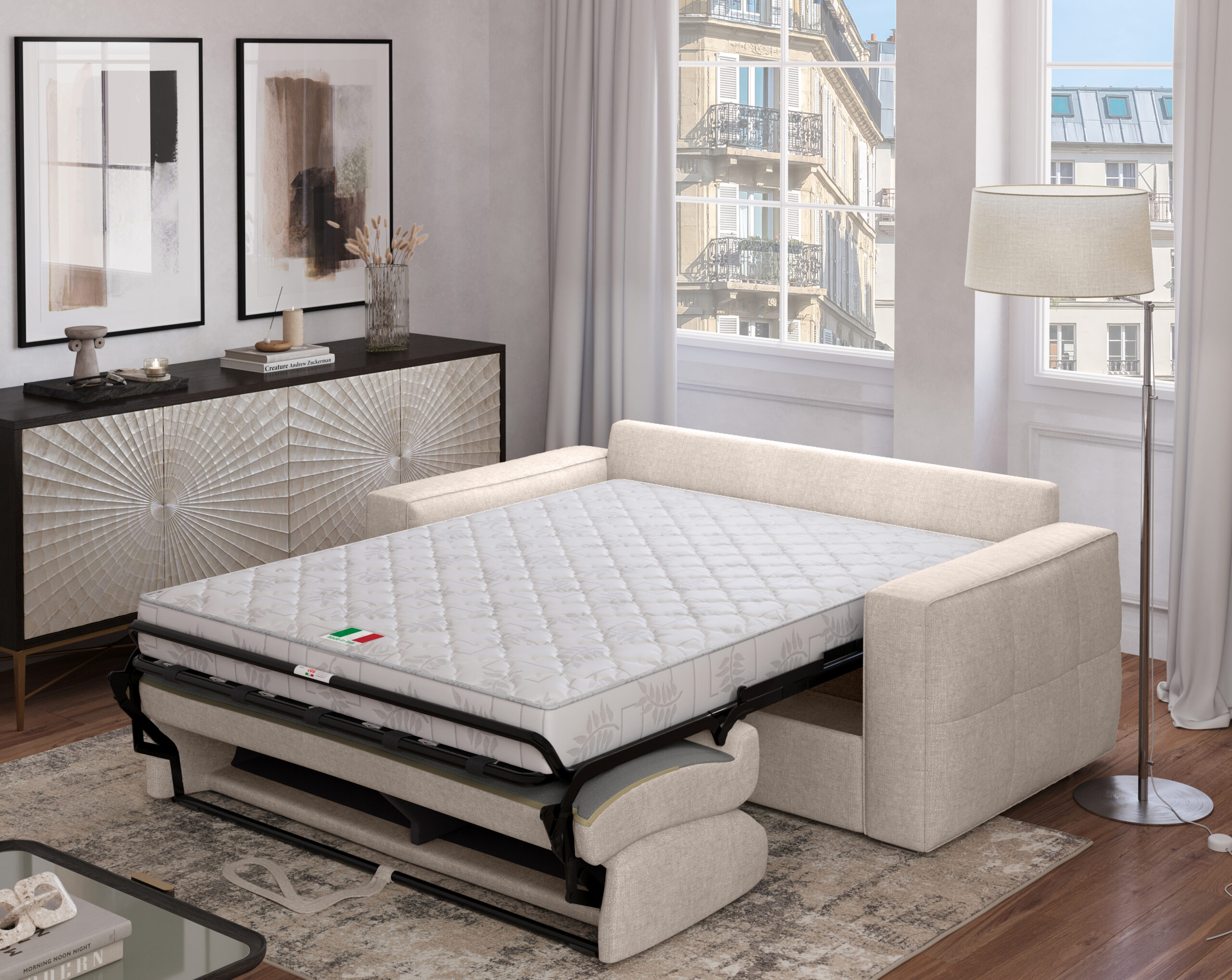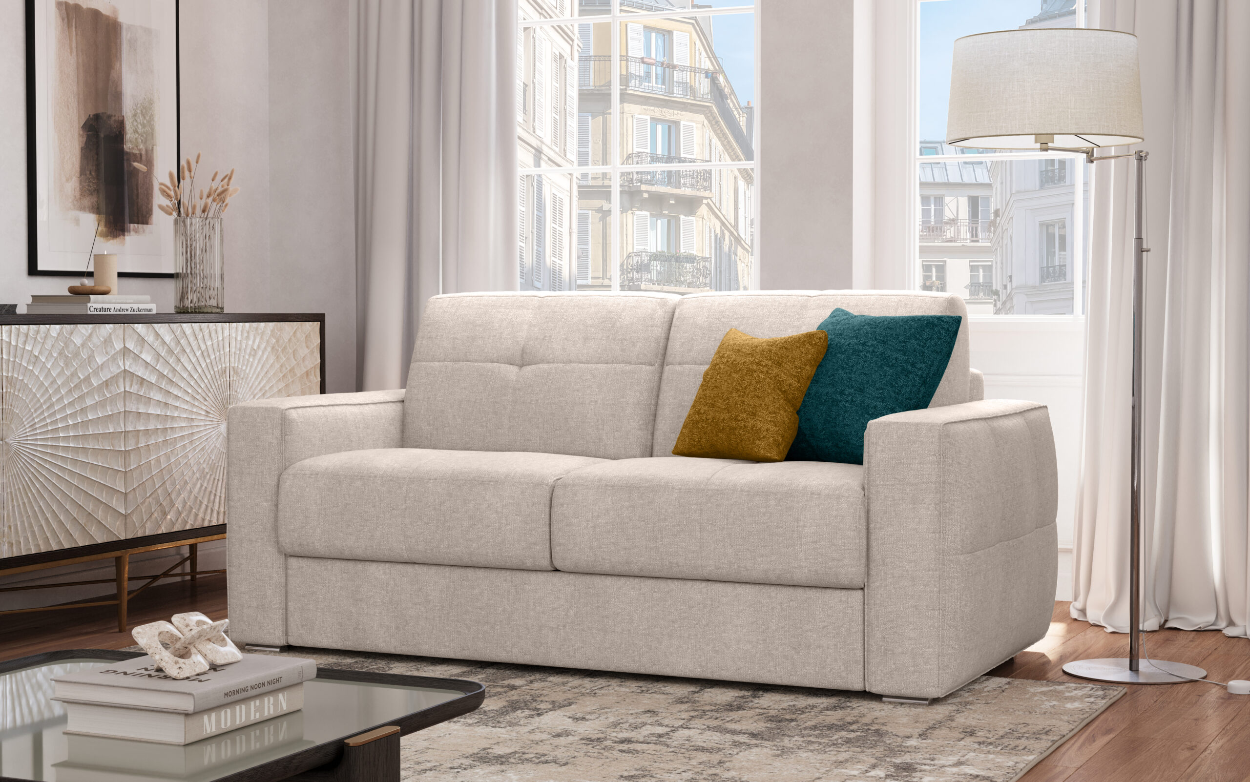 Il divano-letto Square con materasso H 14 è una soluzione elegante e funzionale, ideale per chi cerca comfort quotidiano in uno stile moderno. Dotato di materasso alto 14 cm, presenta un design lineare e compatto e si adatta facilmente a qualsiasi ambiente, mentre il meccanismo di apertura semplice e fluido consente una trasformazione rapida da divano a letto.