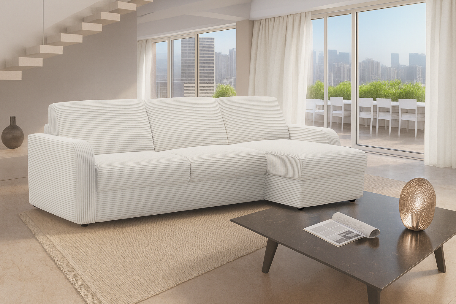 Il divano-letto Tom angolare è una soluzione componibile e salvaspazio, pensata per offrire comfort quotidiano e versatilità in ambienti moderni. Dotato di letto integrato, è ideale per chi cerca funzionalità senza rinunciare allo stile.